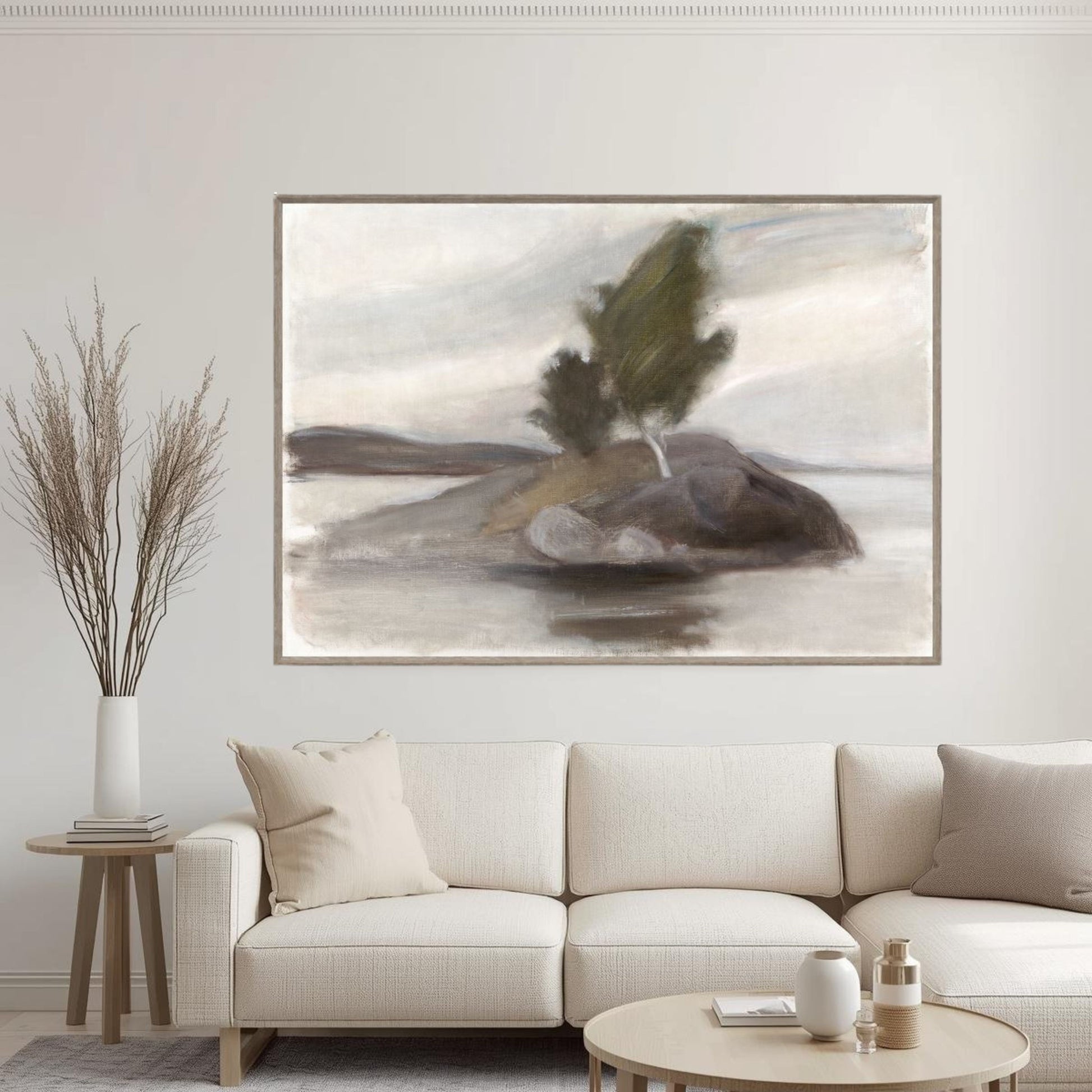 Bring serene beauty into your home with Georgian View, a giclée print that captures the calm elegance of coastal horizons. Rendered in soft blues, greens, greys, and whites, the landscape’s soothing palette and wide composition create a sense of space and tranquility.