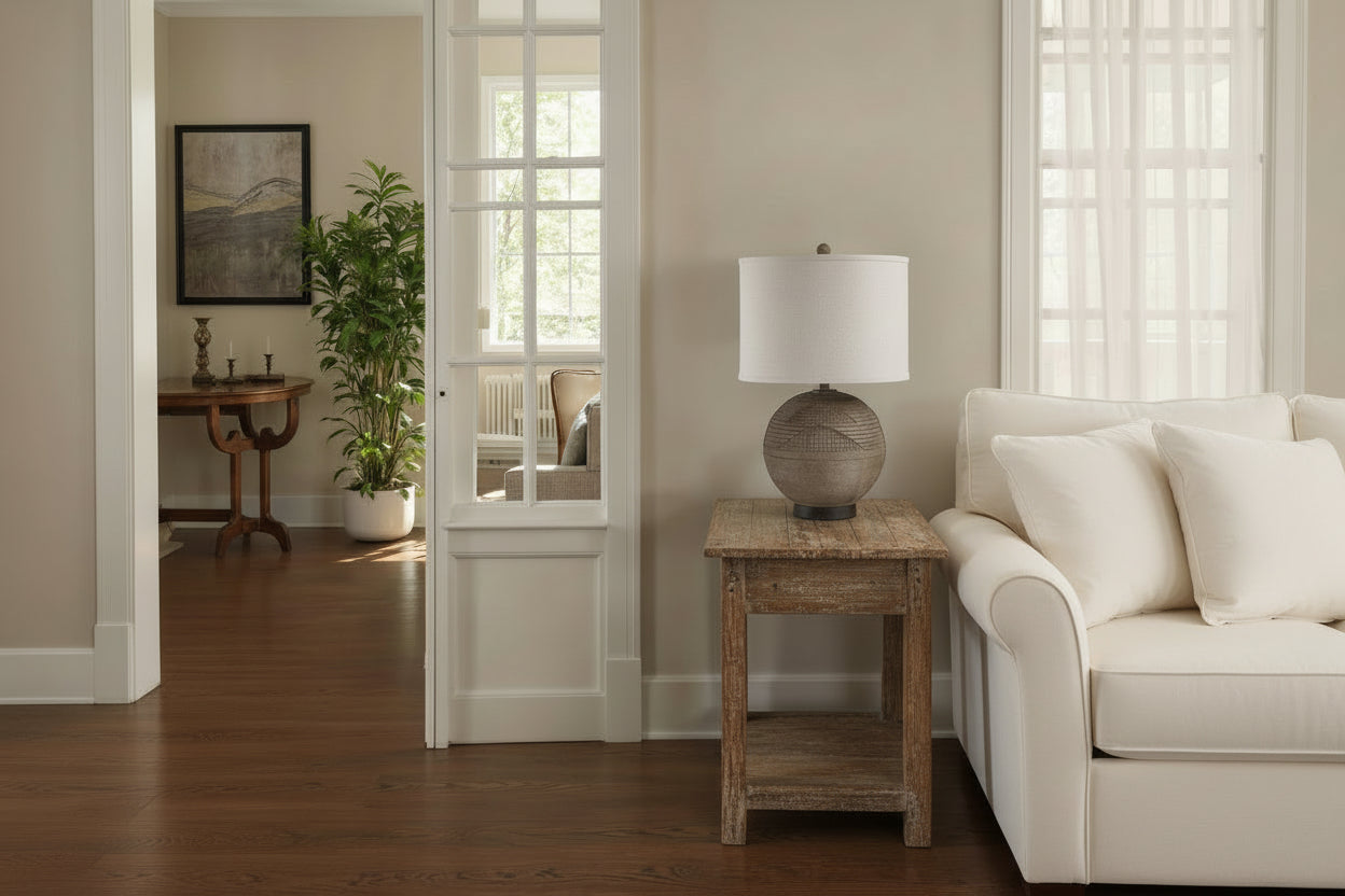 A stylish addition to your design project, this table lamp is ready to bring light and texture to any room. Featuring a carved pattern, a hand-painted finish and a linen lampshade, it delivers soft illumination at the flick of switch. Perfect for lighting up a reading spot or entryway, add it to your decorating plans today.